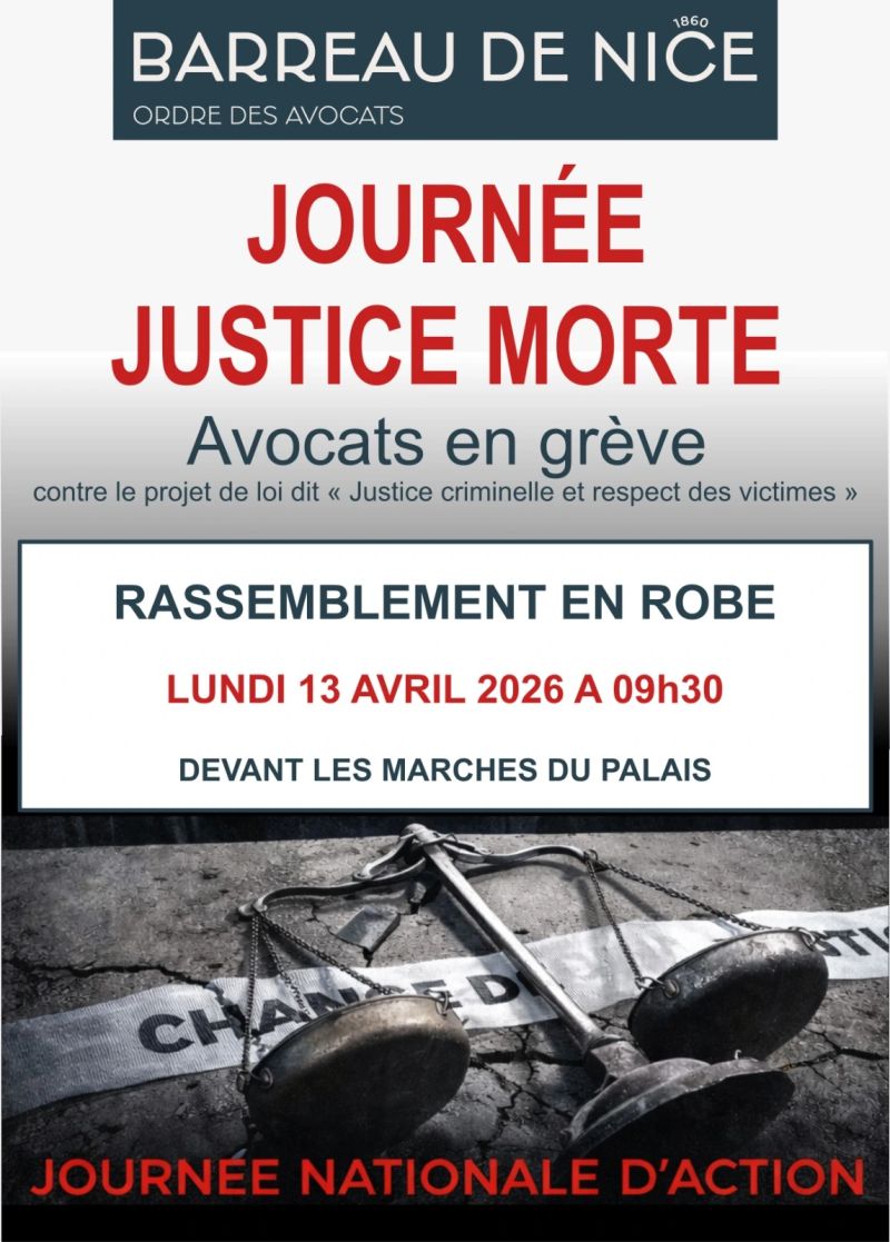Le barreau de Nice et le barreau de grasse appellent à une journée « justice morte » le lundi 13 avril