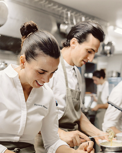 Formés notamment dans les cuisines du Mirazur, Florencia Montes et Lorenzo Ragni confirment, avec cette nouvelle ouverture, leur volonté de structurer un projet entrepreneurial articulé autour de deux concepts complémentaires : une table gastronomique étoilée et une trattoria contemporaine, tournée vers la convivialité et l’authenticité.