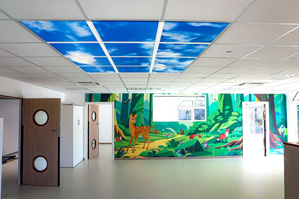 – Modernisation des espaces intérieurs : salles d’activités, espaces enfants, locaux du personnel, menuiseries, sols et peintures,