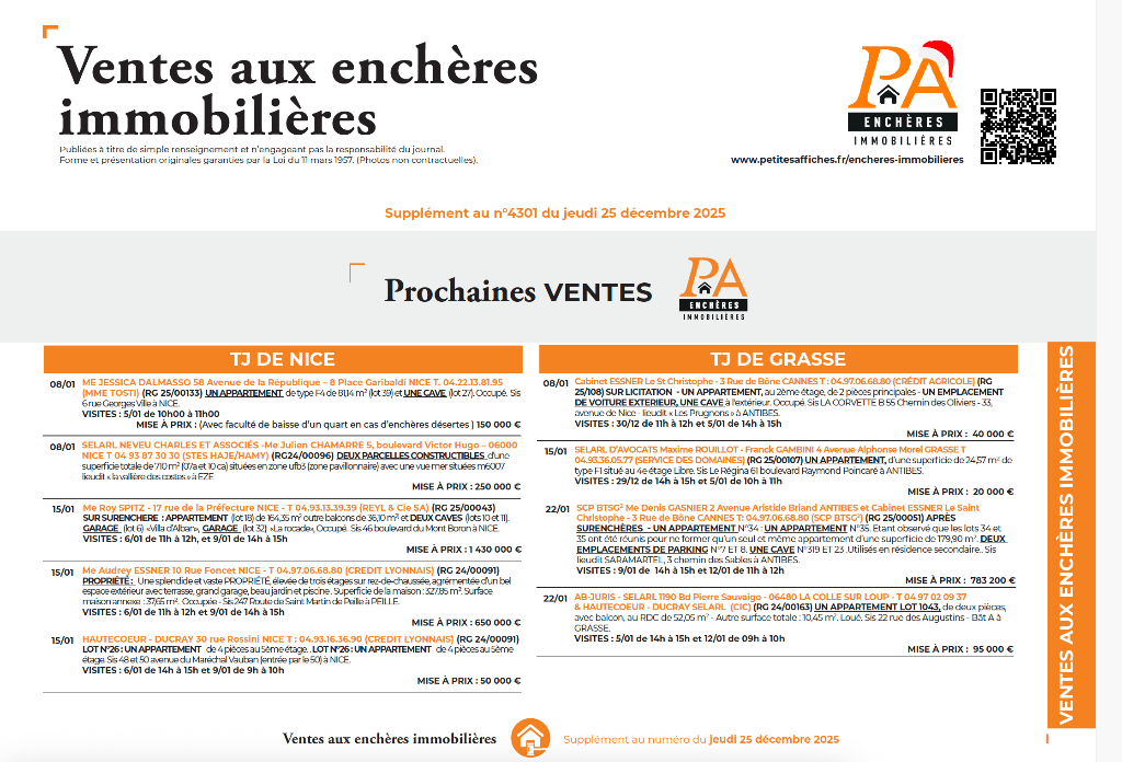 4301 - 25/12/2025 Ventes aux enchères - Tableau Synoptique