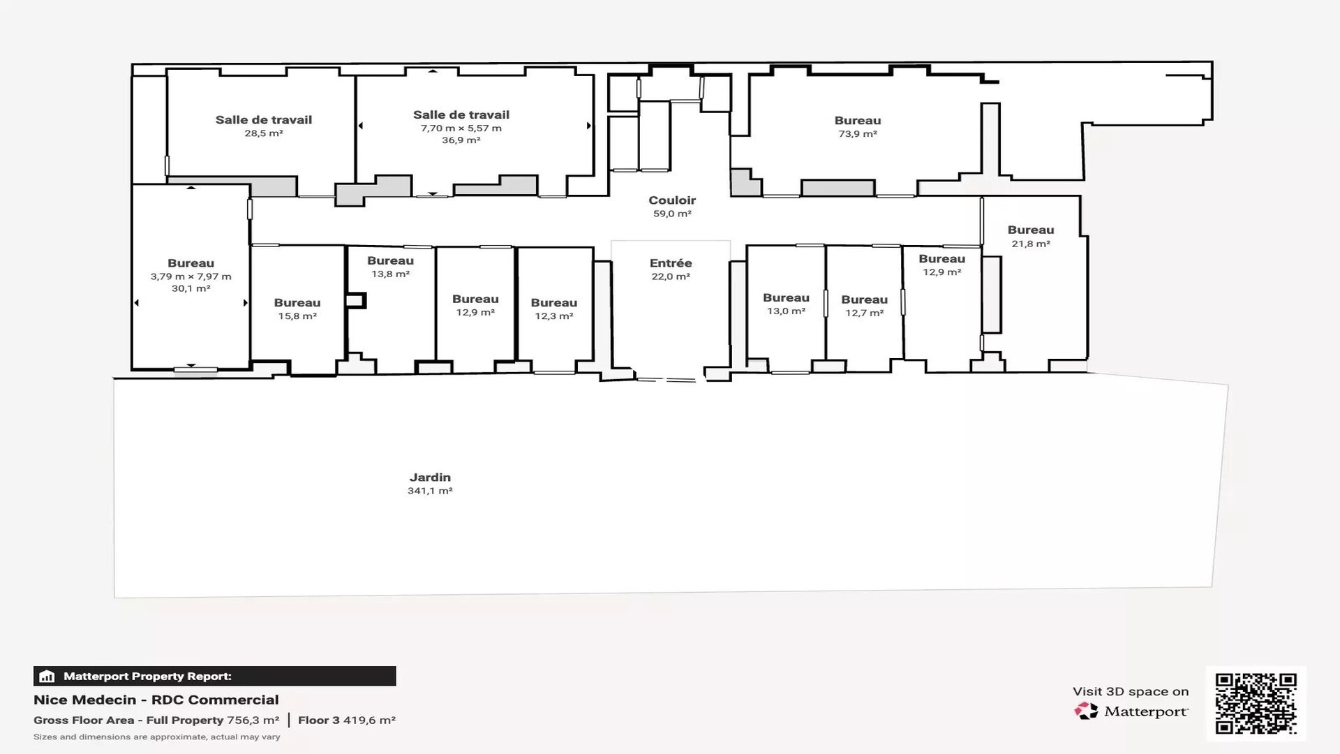 À Nice, en plein hyper-centre, se dresse un espace rare d’architecture et de lumière, véritable écrin pour les ambitions professionnelles. Traversant, élégant, ce lieu se déploie sur 788,7 m² utilisables, adjoints d’un jardin privatif de 341 m² en façade, respirant la quiétude en pleine ville.Le théâtre de la lumière - Orienté Est-Ouest, le bâtiment se raconte au fil de la journée :• Le matin, les bureaux à l’avant, exposés à l’Est, s’éveillent avec une lumière douce et dorée, stimulante, inspirante pour les équipes.• L’après-midi, les salles de réunion et de formation à l’entresol, situées du côté Ouest, se parent d’un soleil rasant, créant une atmosphère propice à la concentration, à l’inspiration, à la réflexion.Circulation maîtrisée & accès privilégiés avec une entrée indépendante située sur le devant du bâtiment permet d’accéder directement à l’entresol. Cette entrée est idéale pour :• un centre de formation,• des réunions,• des sessions de syndic de copropriété,le tout sans traverser les autres bureaux ni perturber les activités du rez-de-chaussée.Trois autres entrées, dont l’entrée de prestige côté avenue, complètent ce dispositif en offrant à la fois visibilité et discrétion.Ambiance et calme avec Le jardin en façade, clos, grillagé, flanqué de deux portails, est un écrin de verdure baigné en lumière permanente, parfait pour des moments de transition entre travail et détente. Le contraste des ambiances est saisissant : matin lumineux à l’Est, après-midi plus feutré à l’Ouest — chaque espace trouve sa lumière, selon le moment.Pour quelles ambitions ?Un lieu pensé pour les exigences du prestige :• Cabinets d’avocats, études notariales, assurances, syndicats de copropriété, institutions diplomatiques ;• Écoles spécialisées, centres de formation professionnelle, ou organisations engagées souhaitant réunir ou former sans compromis sur le standing.