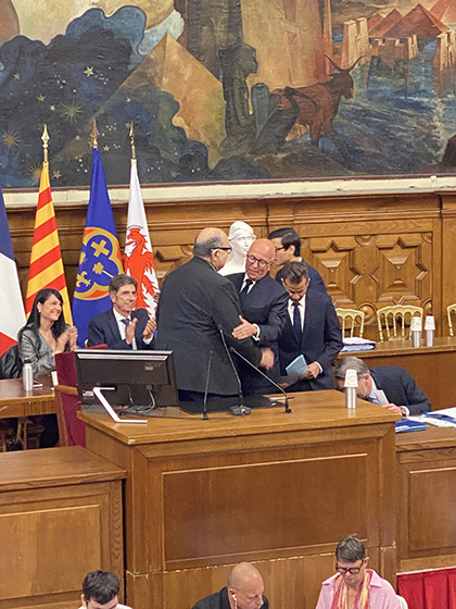Le maire de La Trinité, Ladislas Polski, a souhaité prendre la parole après le discours du nouveau président. Il a d’abord salué l’action de son prédécesseur, Christian Estrosi, puis a adressé à Éric Ciotti ses félicitations républicaines. « La coalition politique que vous avez conduite l’a emporté à Nice et dans plusieurs communes. Elle ne l’a pas emporté dans d’autres », a-t-il relevé. « Vous auriez ainsi pu choisir de diriger avec les unes contre les autres. Je prends acte aujourd’hui de votre volonté inverse, d’entamer cette mandature en plaçant l’intérêt des communes et l’intérêt général métropolitain comme des objectifs supérieurs. »