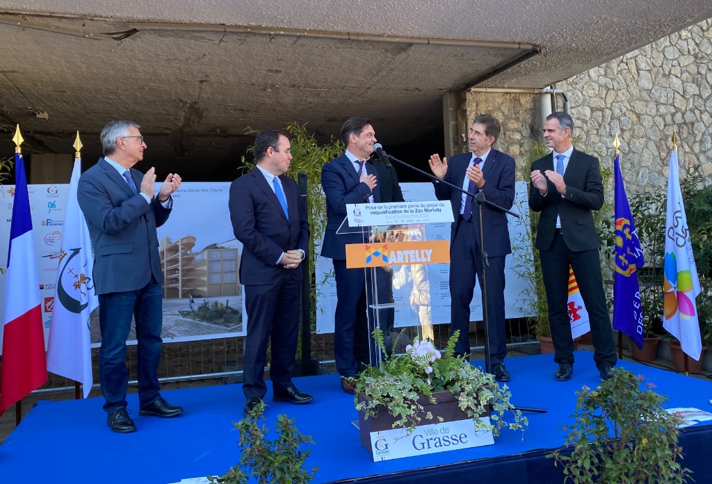 « Aujourd’hui, en lançant Martelly, nous parachevons ce grand projet de ville ambitieux qui va renforcer l’attractivité de notre ville, de notre bassin de vie. Les chiffres témoignent de l’ampleur de cette opération : 90 millions d’euros seront mobilisés avec nos partenaires et nos promoteurs qui vont relever ce défi. Un investissement exceptionnel pour une métamorphose exceptionnelle. D’ici fin 2029, ici où nous sommes, cette emprise d’1,6 hectare proposera un parcours commercial et des services de près de 6 000 m2, des espaces publics revalorisés, végétalisés, des places de parking supplémentaires, de nouveaux logements. Et puis, au-dessus de Monoprix, un hôtel 3 étoiles. » Le président du conseil départemental, Charles Ange Ginésy a évoqué un projet qui va faire de cette zone d’aménagement concerté « une ZAC moderne, qui va relever le plateau grassois, créer de l’emploi, générer de l’activité, amener du confort, amener du service, […] une zone qui va faire vivre ce quartier ancien dont à l’époque je m’inquiétais, de voir quelquefois les murs se délabrer, de voir quelquefois les immeubles s’effondrer avec des arrêtés de péril que le maire était obligé de prendre ».
