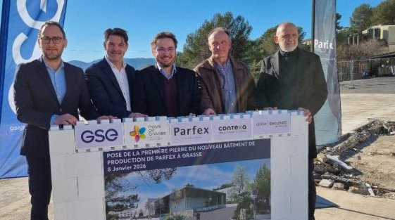PARFEX a officiellement lancé, ce jeudi 8 janvier, les travaux d’extension et de rénovation de son site industriel historique, situé avenue Louison Bobet, au sein du Parc d’Activités des Bois de Grasse. La pose de la première pierre marque une nouvelle étape structurante pour la maison de parfumerie, engagée dans un vaste programme de modernisation industrielle.