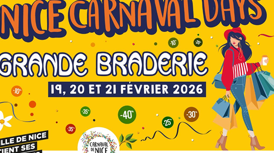 La Ville de Nice organise la 6e édition de sa grande braderie lors des Nice Carnaval Days les 19, 20 et 21 février 2026.