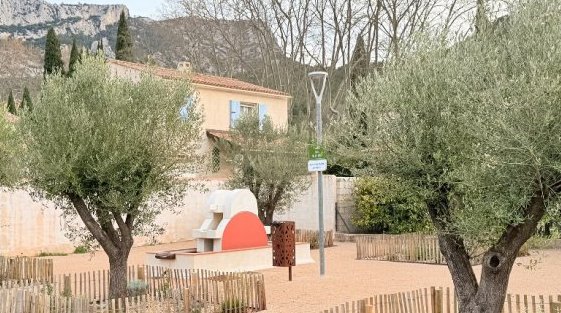 Aujourd’hui rebaptisée place des Oliviers, elle offre un cadre plus serein et plus durable. Cette transformation illustre la volonté de la commune de concilier attentes des habitants, qualité paysagère, sécurité et adaptation aux enjeux environnementaux, dans un espace public redevenu vivant et partagé.